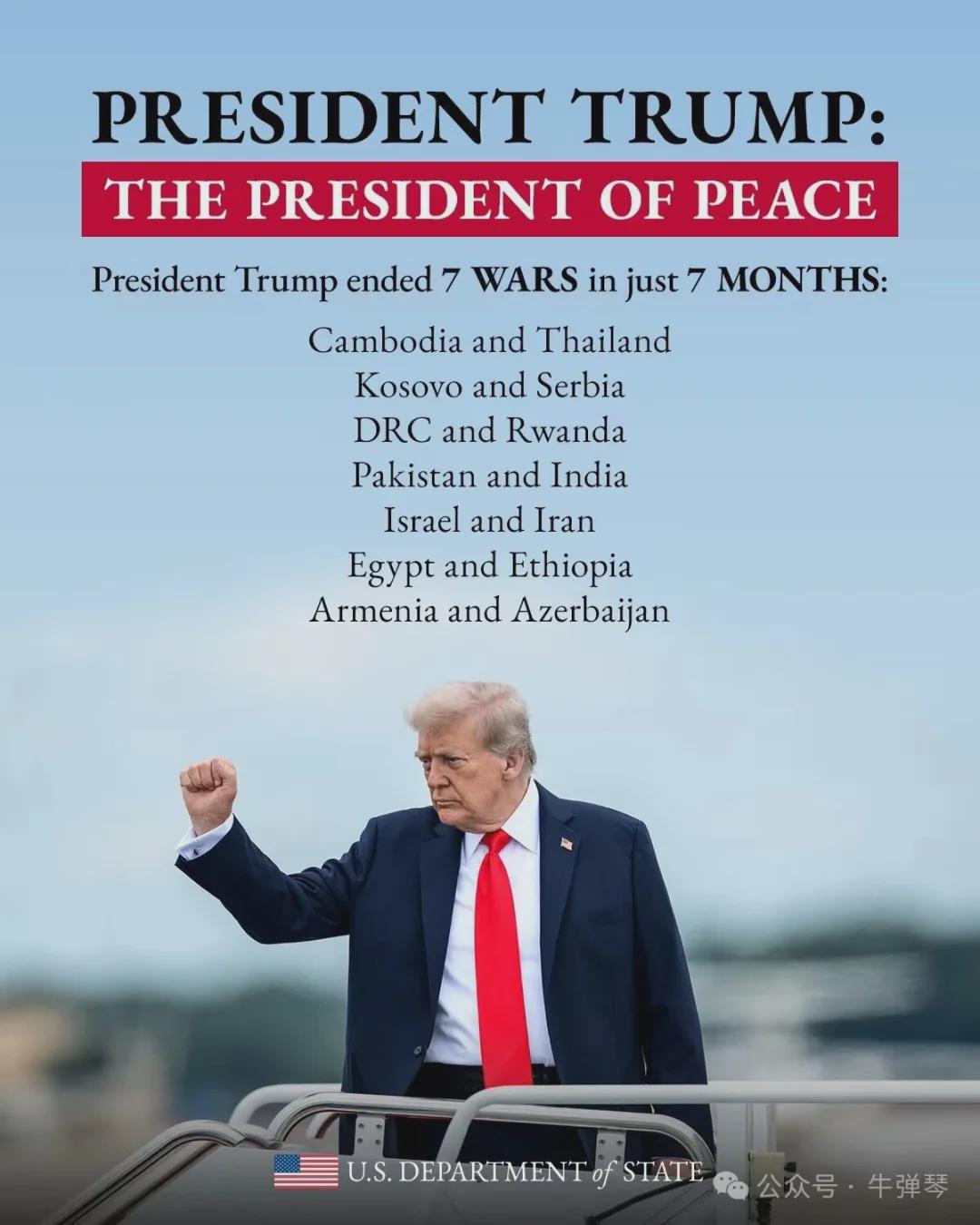 特朗普并且庄严向世界宣告,我结束了七场战争。