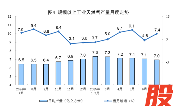 7月规上工业天然气产量216亿立方米,同比增长7.4%7月规上工业天然气产量216亿立方米,同比增长7.4%
